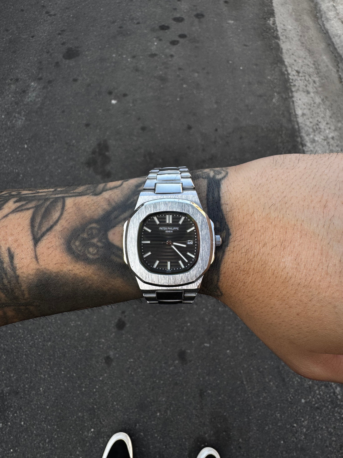 PATEK PHILIPPE NAUTILUS PRATEADO FUNDO PRETO