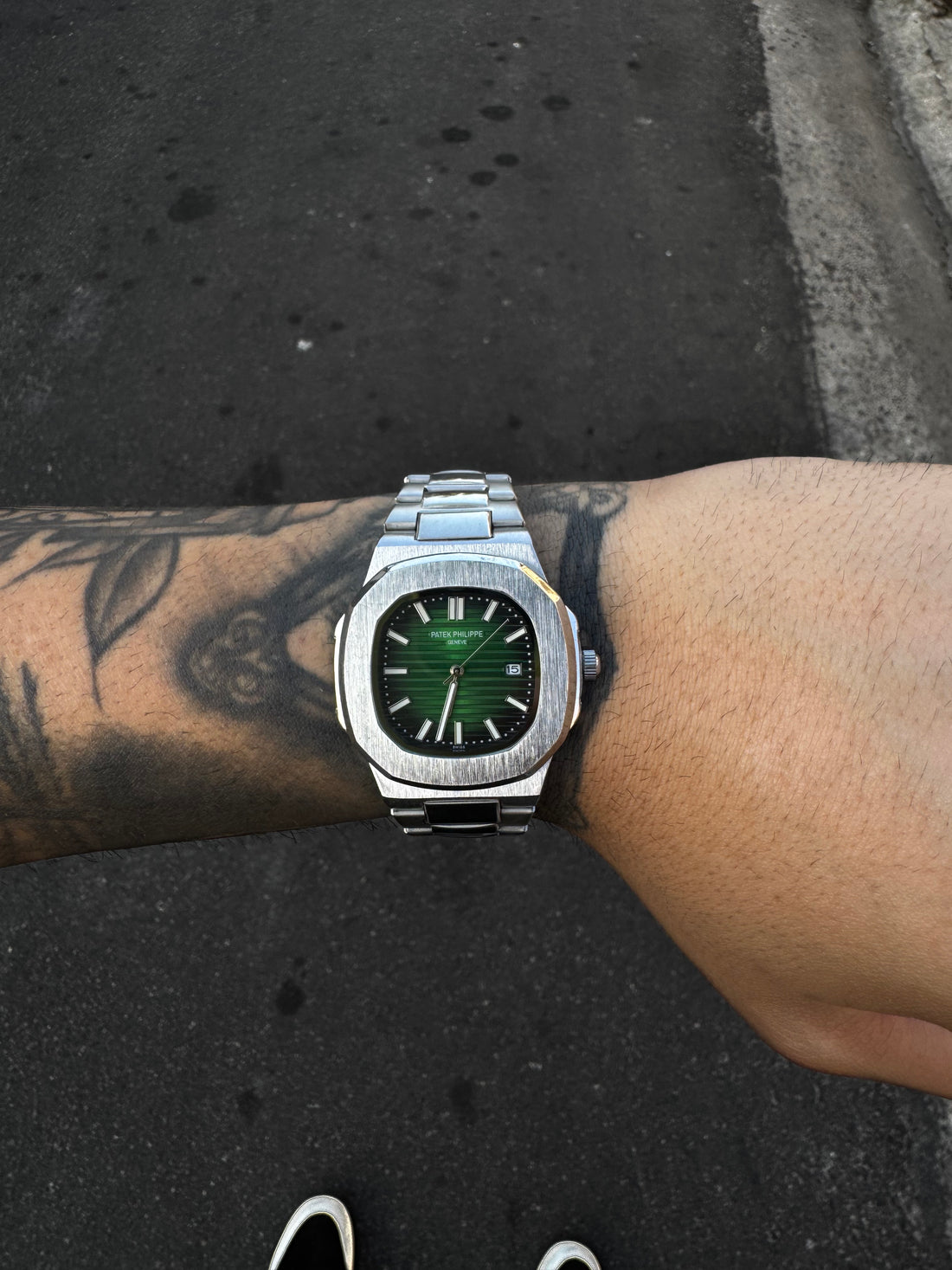 PATEK PHILIPPE NAUTILUS PRATEADO FUNDO VERDE