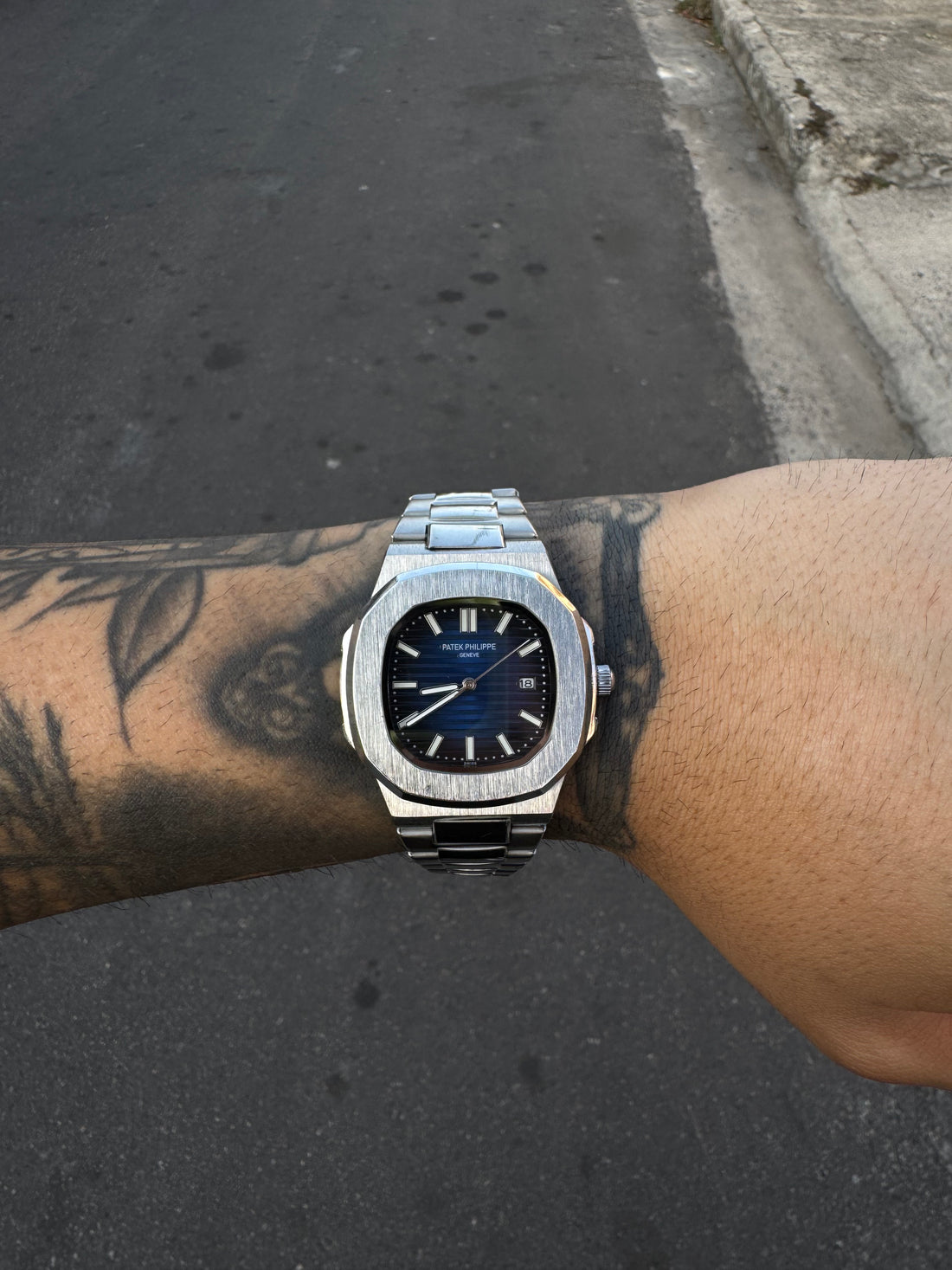 PATEK PHILIPPE NAUTILUS PRATEADO FUNDO AZUL