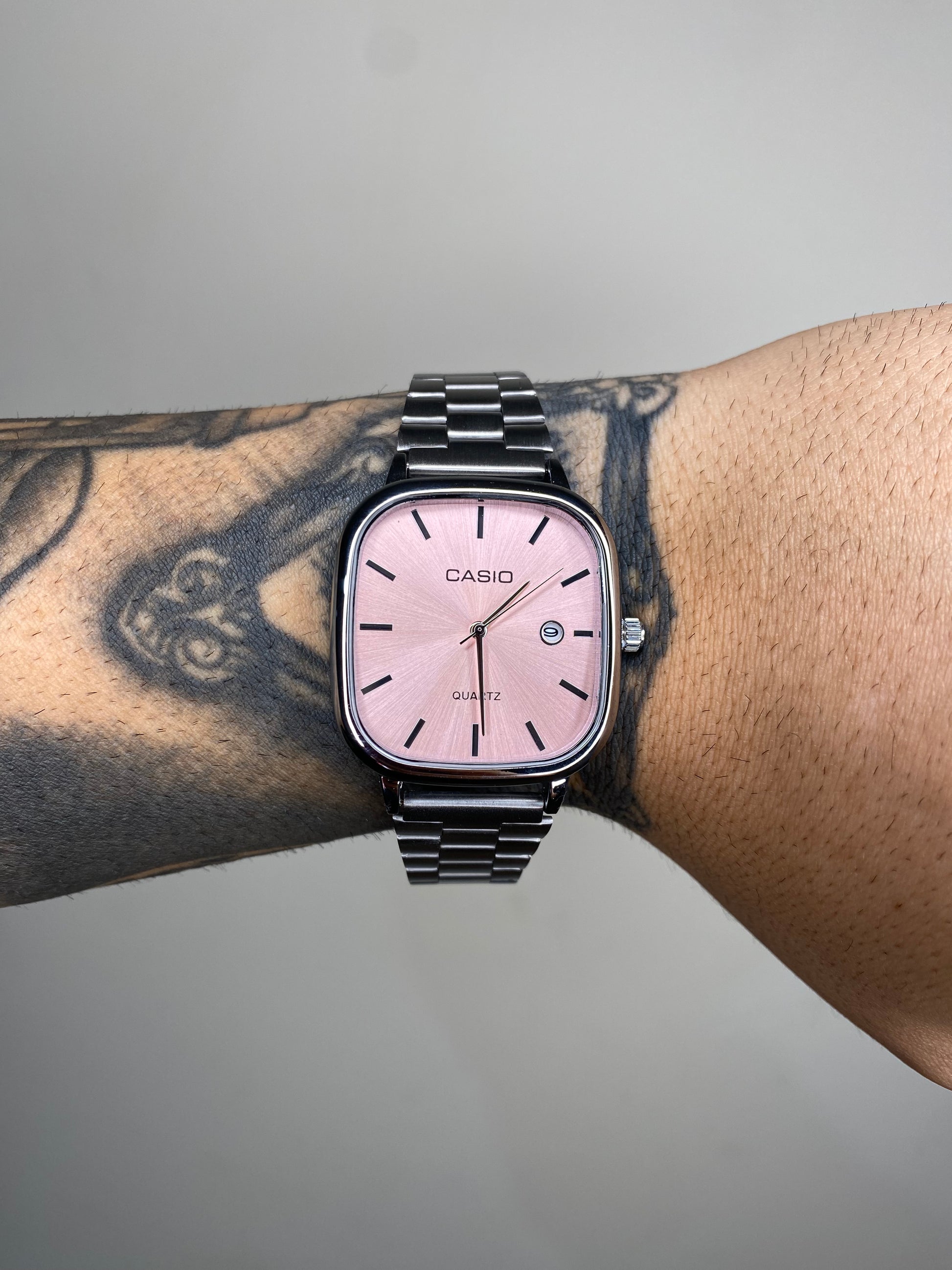 CASIO QUARTZ 2023 PRATEADO FUNDO ROSA