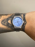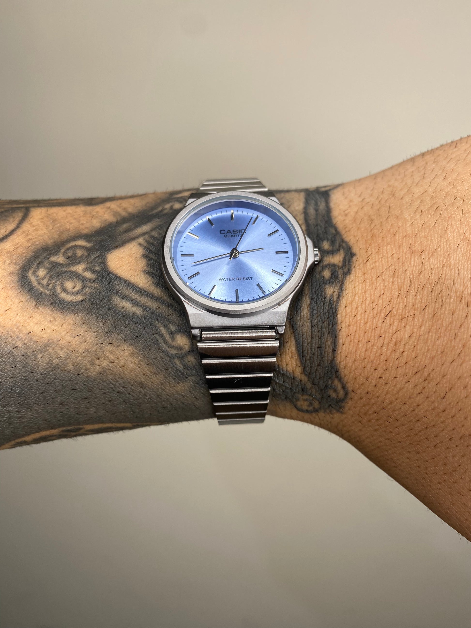 CASIO QUARTZ REDONDO PRATEADO FUNDO AZUL