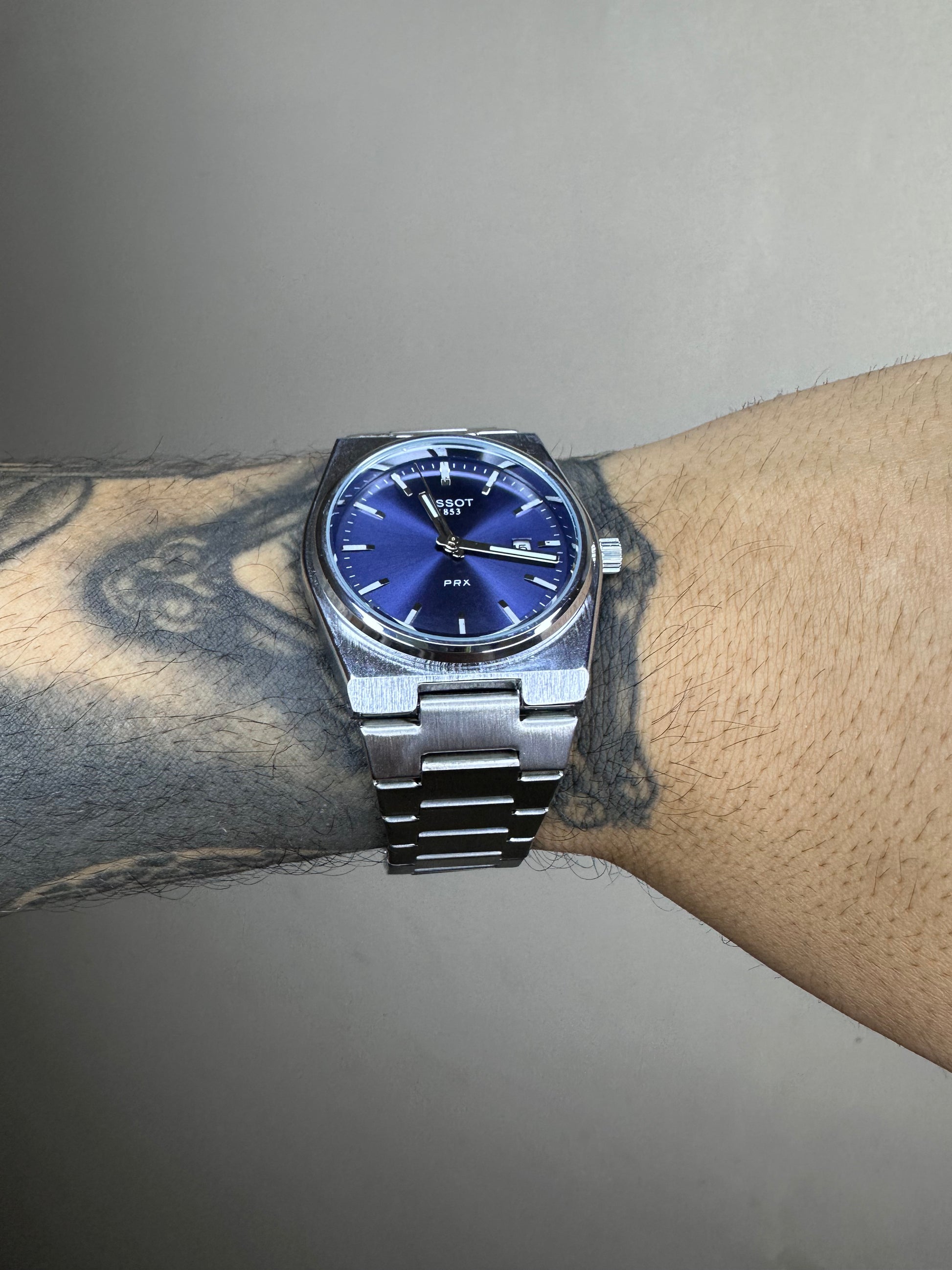 TISSOT PRX PRATEADO FUNDO AZUL
